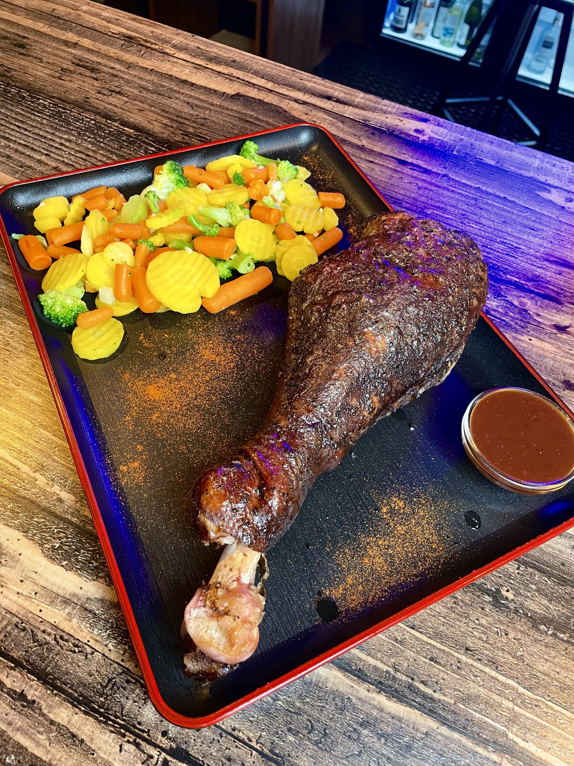 Копченая голень индейки барбекю, припущенные овощи – 1000 гр